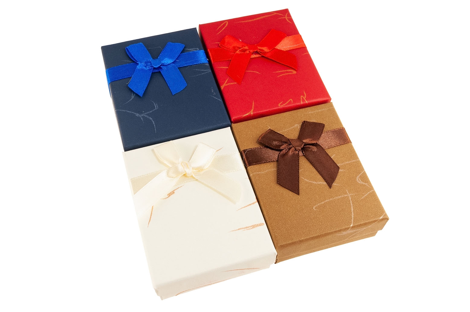 Zestaw składa się z pudełek w czterech kolorach: czerwony, brązowy, granatowy i biały.