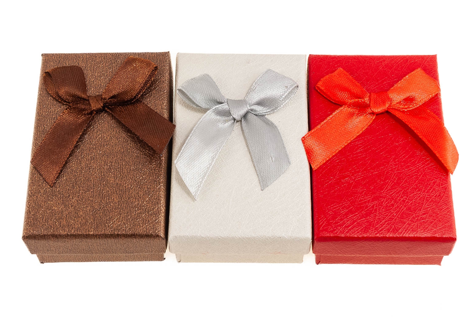 Zestaw składa się z pudełek w trzech kolorach: czerwony, biały i brązowy.