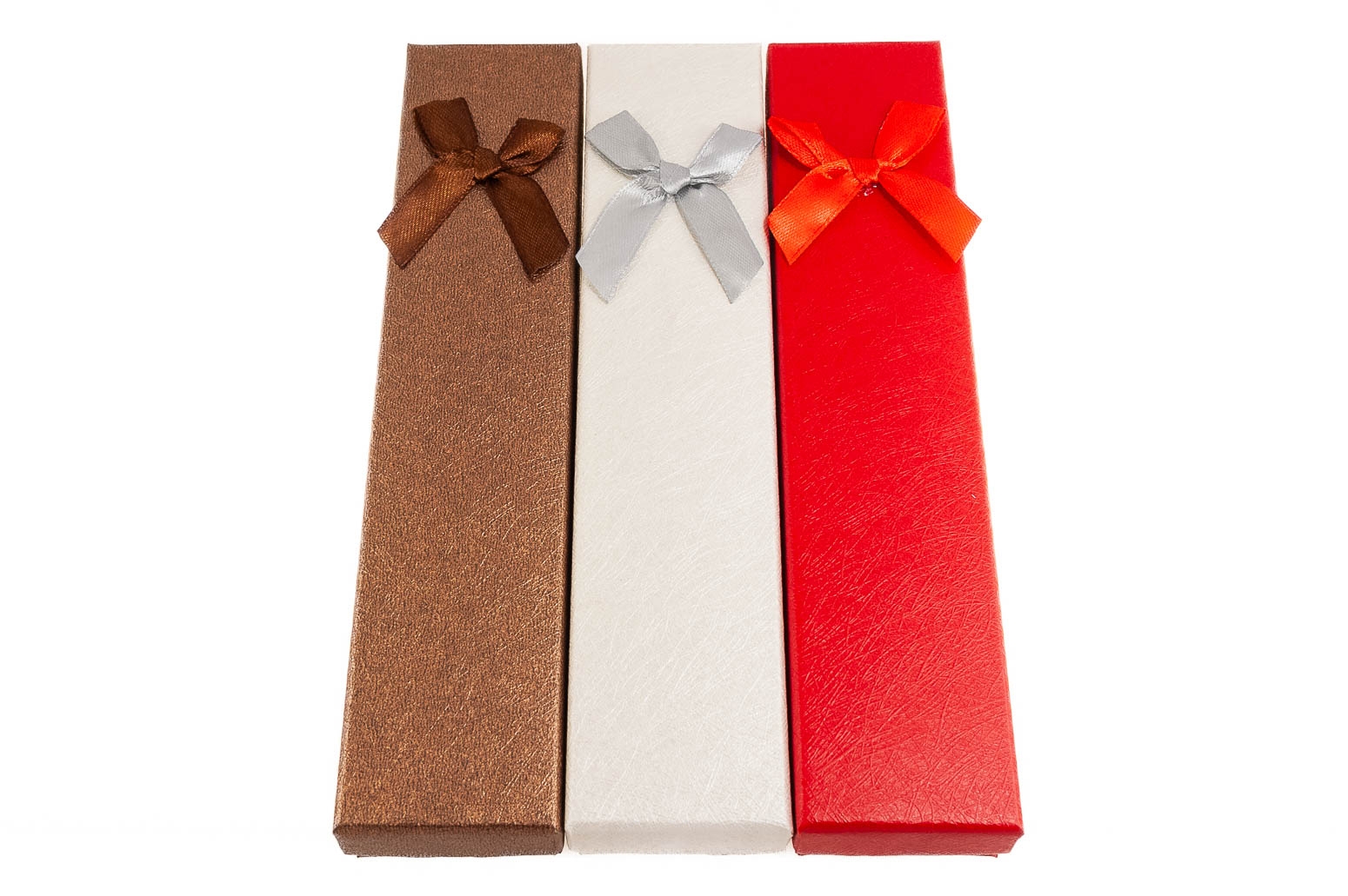 Zestaw składa się z pudełek w trzech kolorach: czerwony, biały i brązowy.