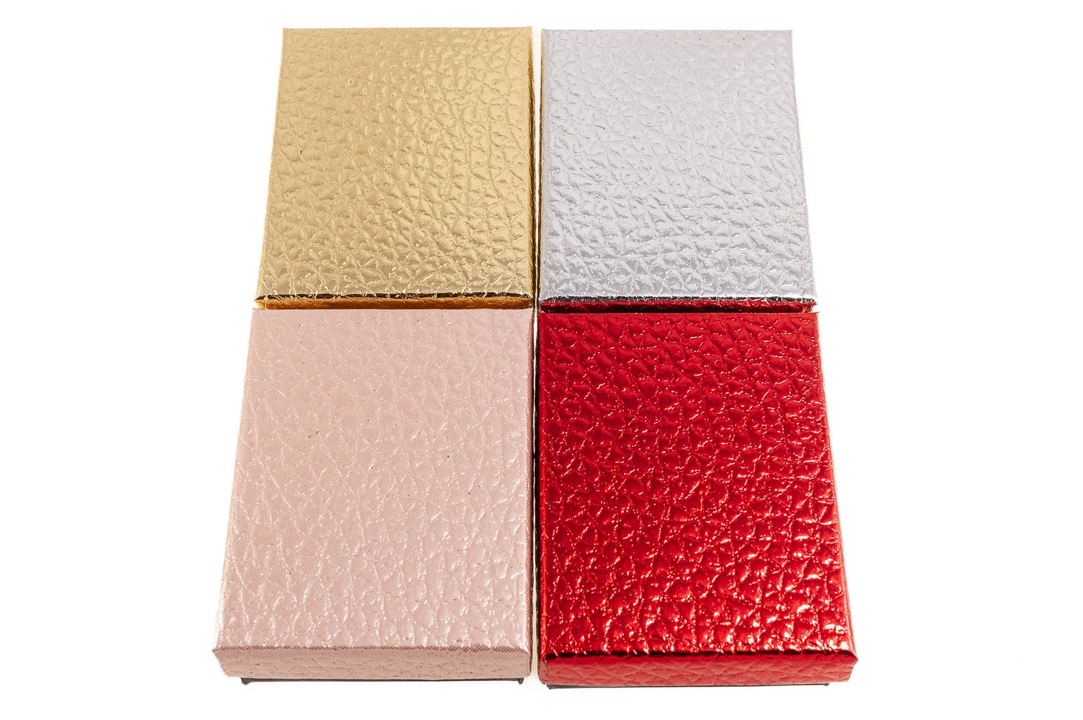 Zestaw składa się z pudełek w czterech kolorach: czerwony, różowy, srebrny i złoty.