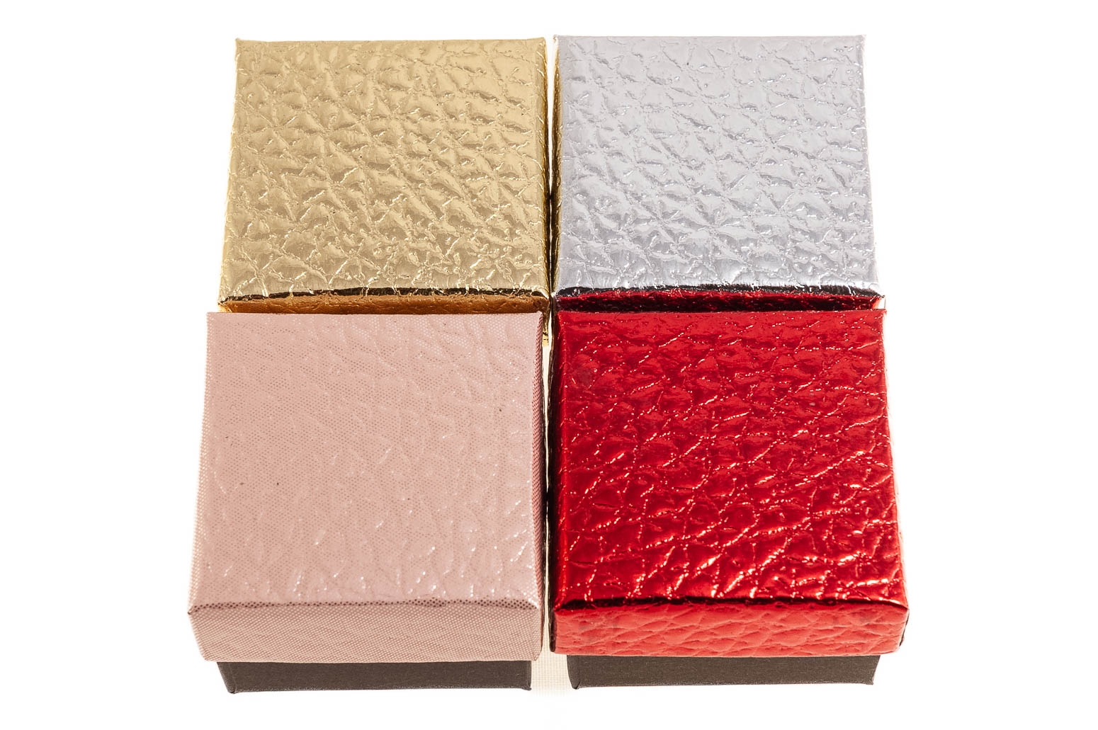 Zestaw składa się z pudełek w czterech kolorach: czerwony, różowy, srebrny i złoty.