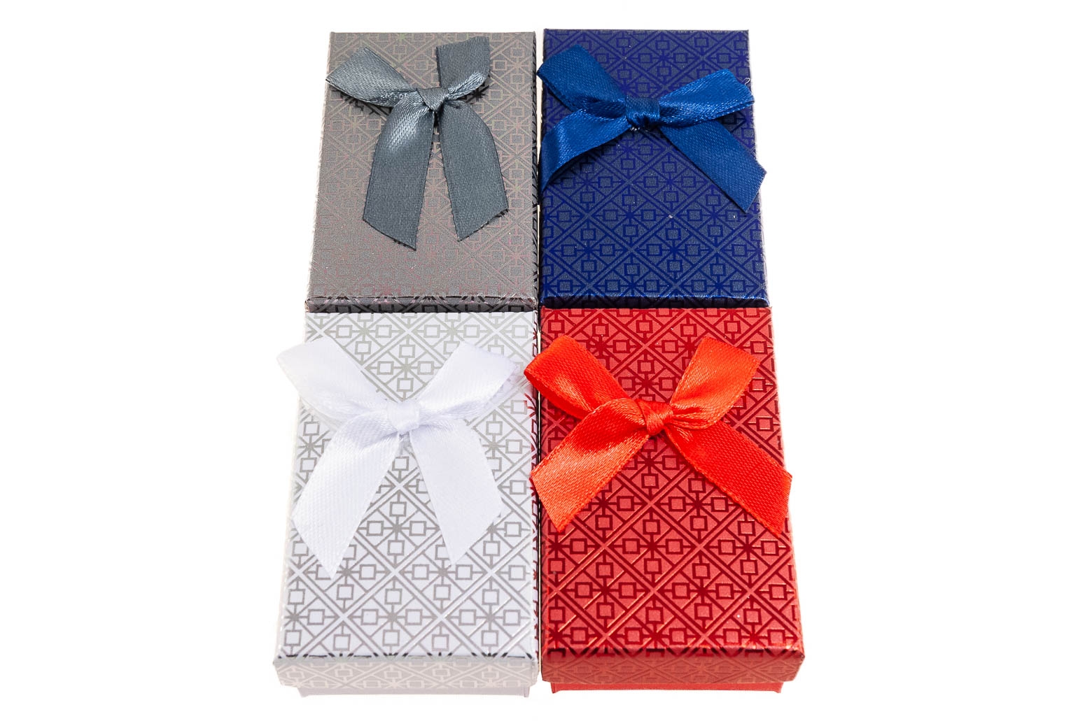 Zestaw składa się z pudełek w czterech kolorach: czerwony, szary, biały i granatowy.
