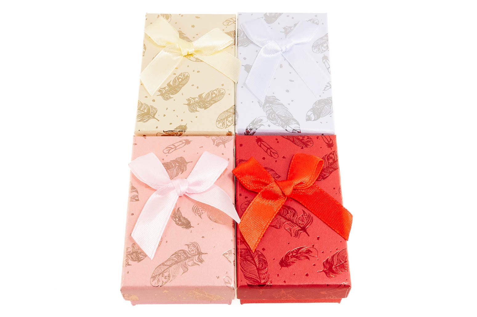 Zestaw składa się z pudełek w czterech kolorach: czerwony, różowy, biały i beżowy.