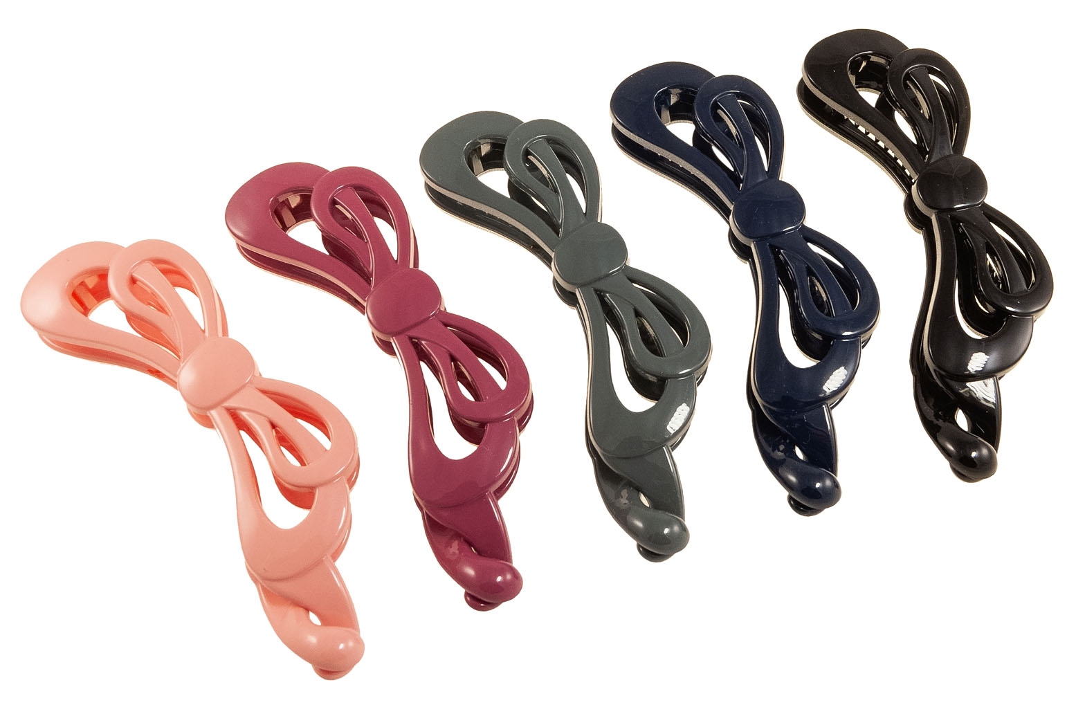 Zestaw skada się ze spinek w pięciu kolorach: czarny, granatowy, szary, malinowy i brzoskwiniowy.
