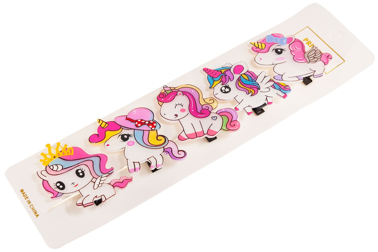 Klasyczny górniak, wykonany z trwałego materiału. Spinka posiada uroczą ozdobę w kształcie jednorożca.Zestaw składa się z pięciu wzorów.