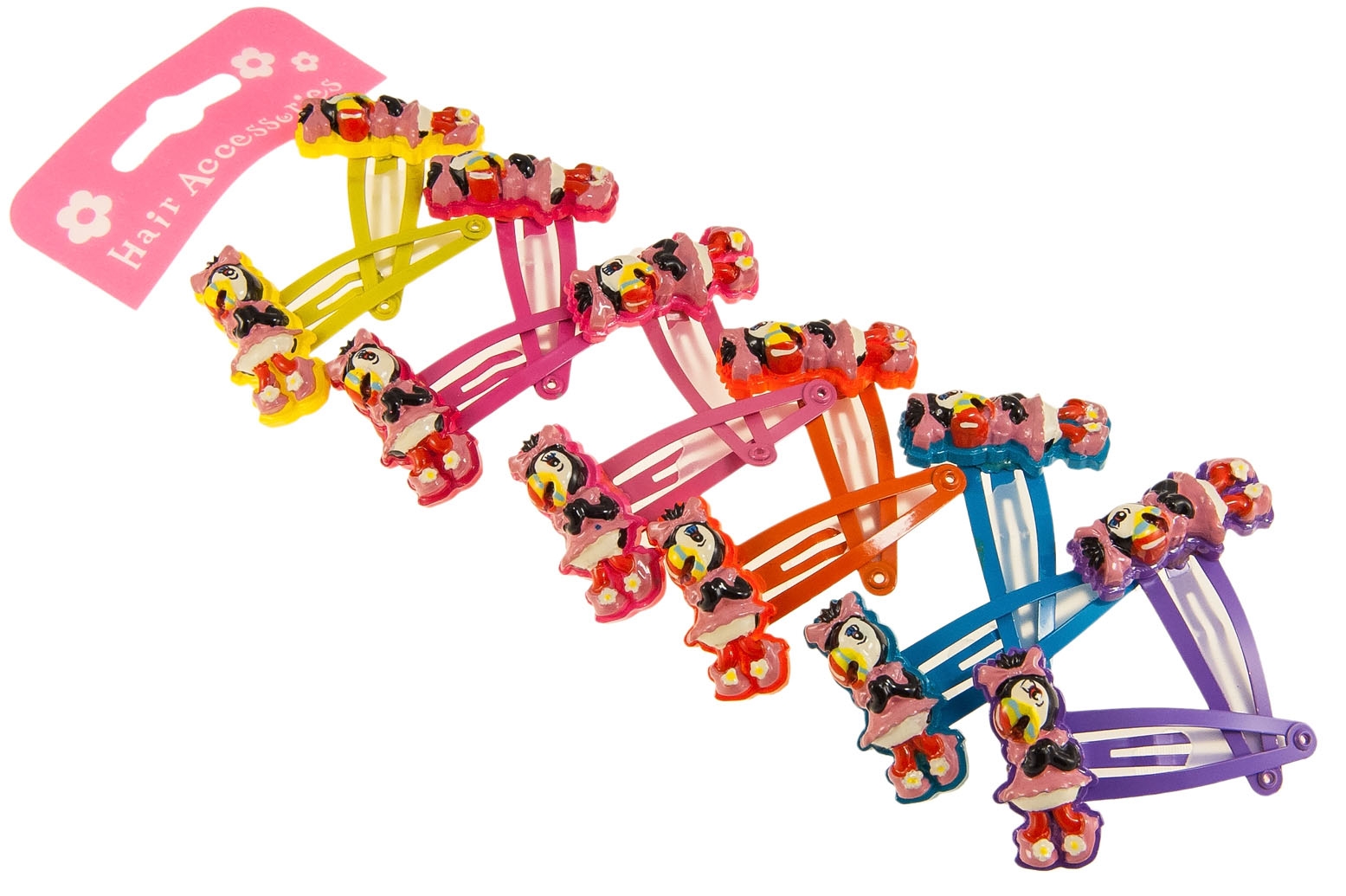 Klasyczne spinki do włosów z uroczą ozdobą w kształcie ptaka.Zestaw składa się z sześciu kolorów: niebieski, fioletowy, żółty, pomarańczowy, jasny i ciemny różowy.