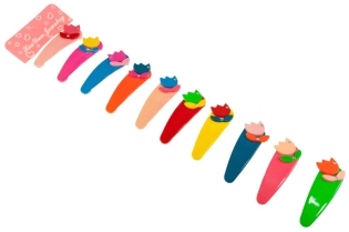 Klasyczne spinki do włosów z uroczą ozdobą.Zestaw składa się z pięciu kolorów: niebieski, żółty, pomarańczowy, czerwony i różowy.