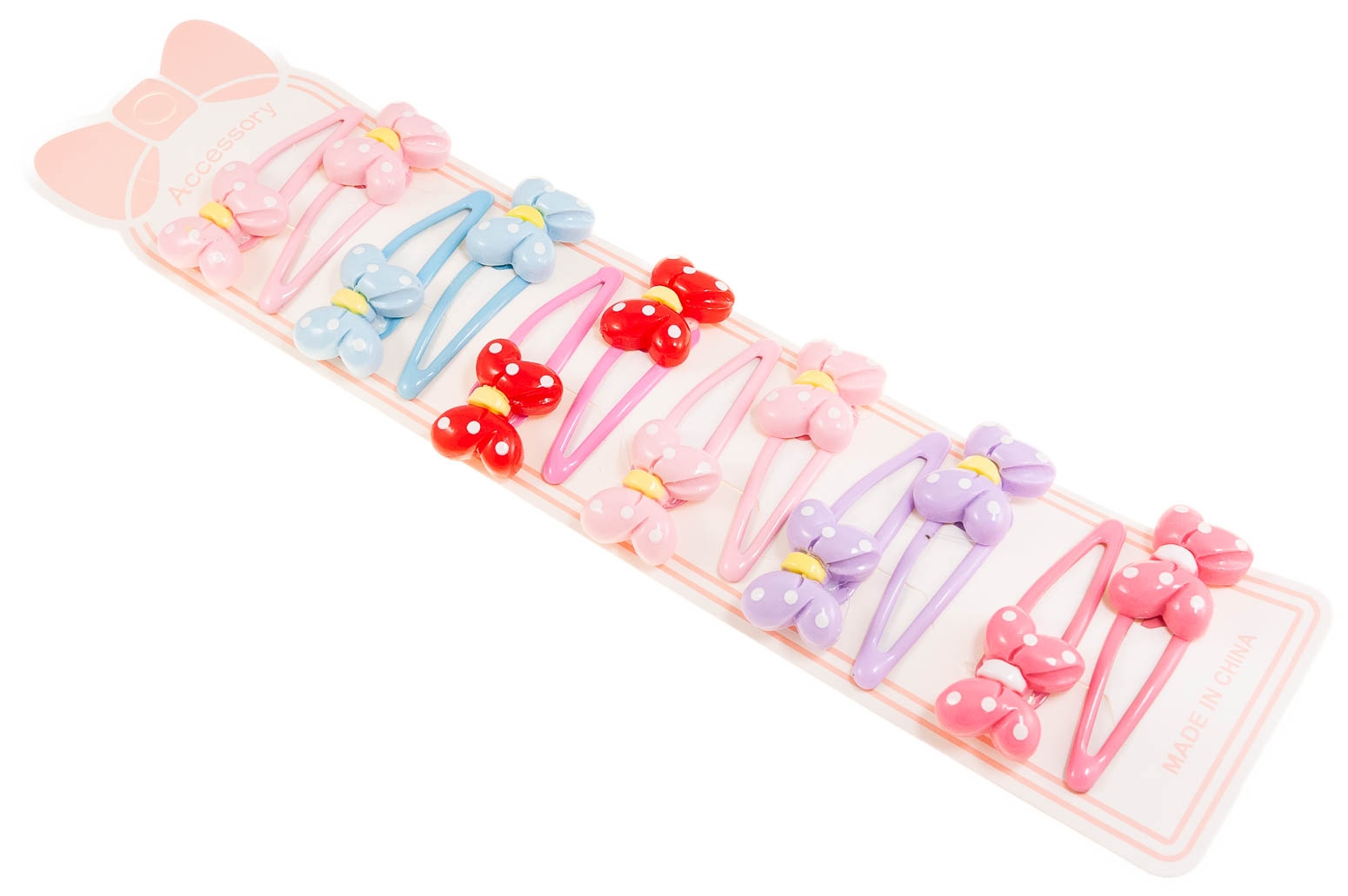 Klasyczne spinki do włosów z uroczą ozdobą w kształcie kokardki.