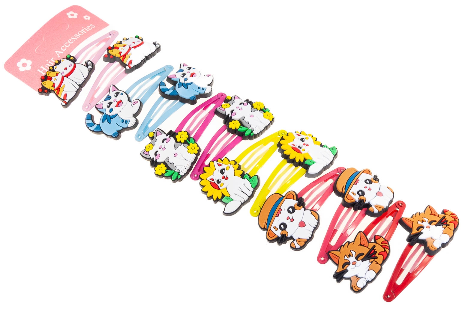 Klasyczne spinki do włosów z uroczymi ozdobami w kształcie kotków.Zestaw składa się z sześciu kolorów.