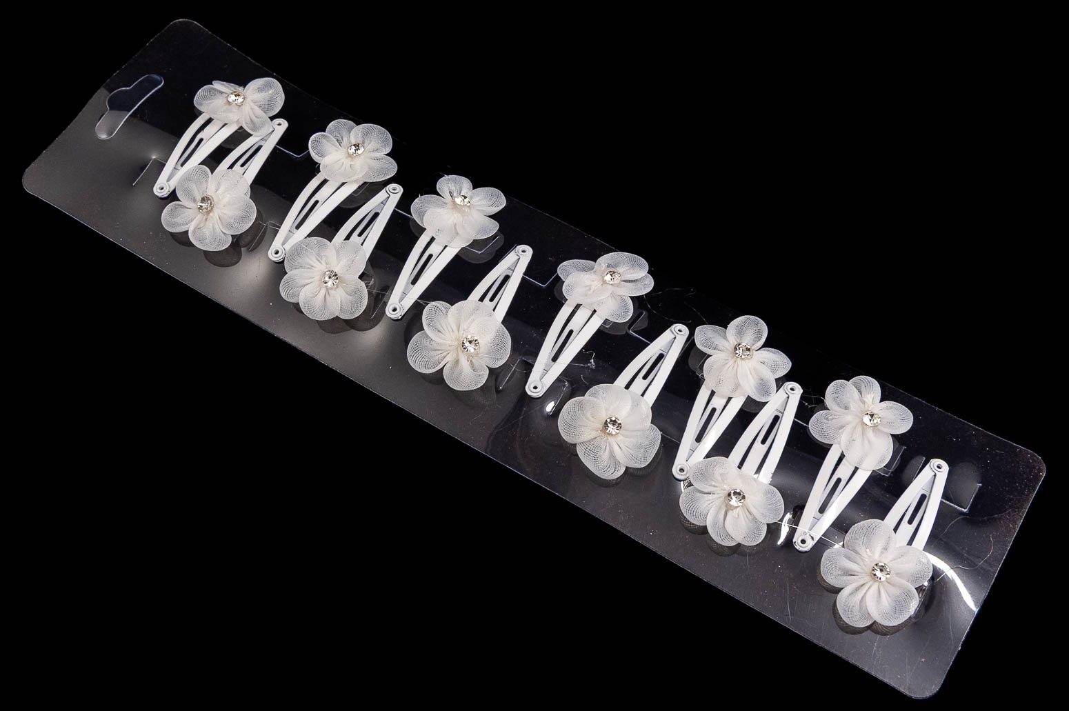 Klasyczne spinki do włosów z uroczą ozdobą w kształcie kwiatka.