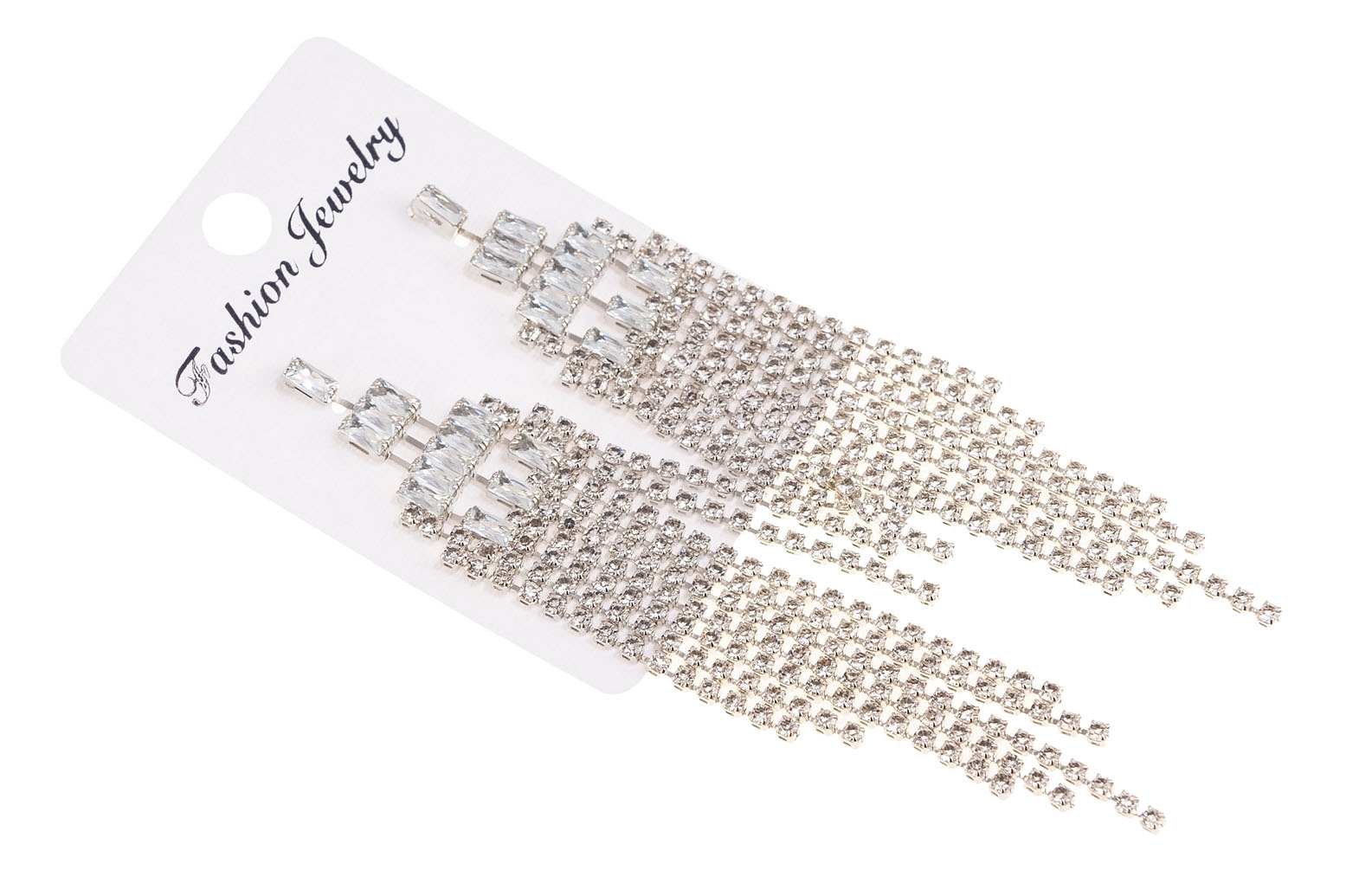 Modne w tym sezonie kolczyki.Długie kolczyki w kolorze srebrnym, ozdobione są pięknie mieniącymi się kamieniami.