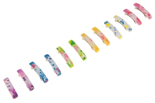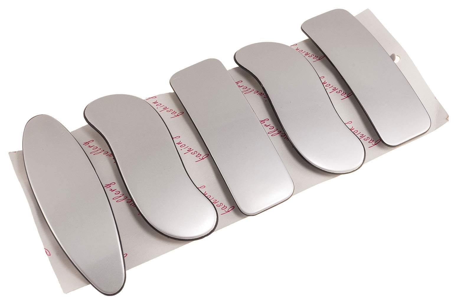 Klasyczne automaty w srebrnym kolorze.Zestaw składa się z pięciu spinek.