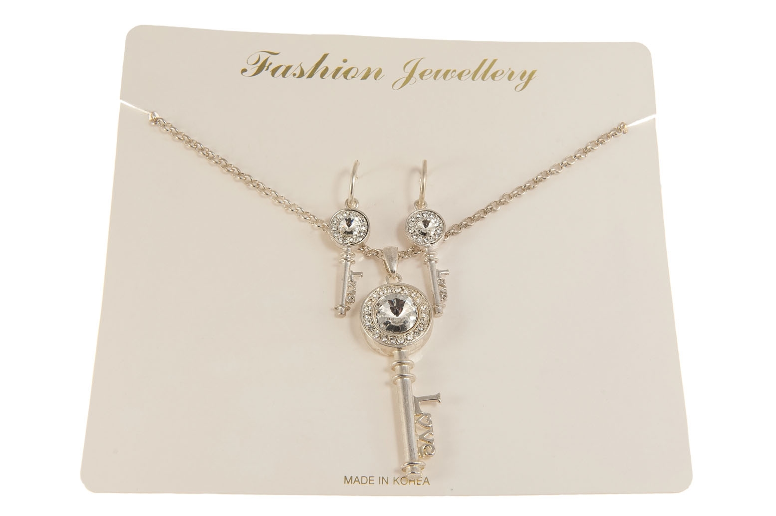 2M.Srebrny naszyjnki z kluczem i kolczyki