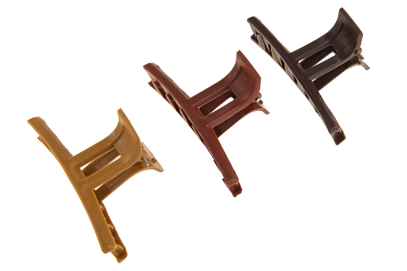 Orginalne spinki do włosów w trzech odcieniach brązu.