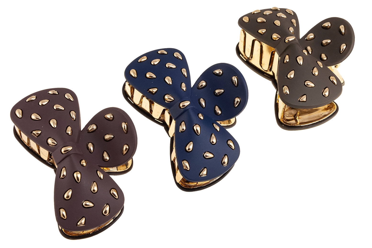 Klasyczne spinki do włosów wykonane z wytrzymałego materiału. Spinki ozdobione są złotymi elementami.Zestaw skada się z trzech kolorów.