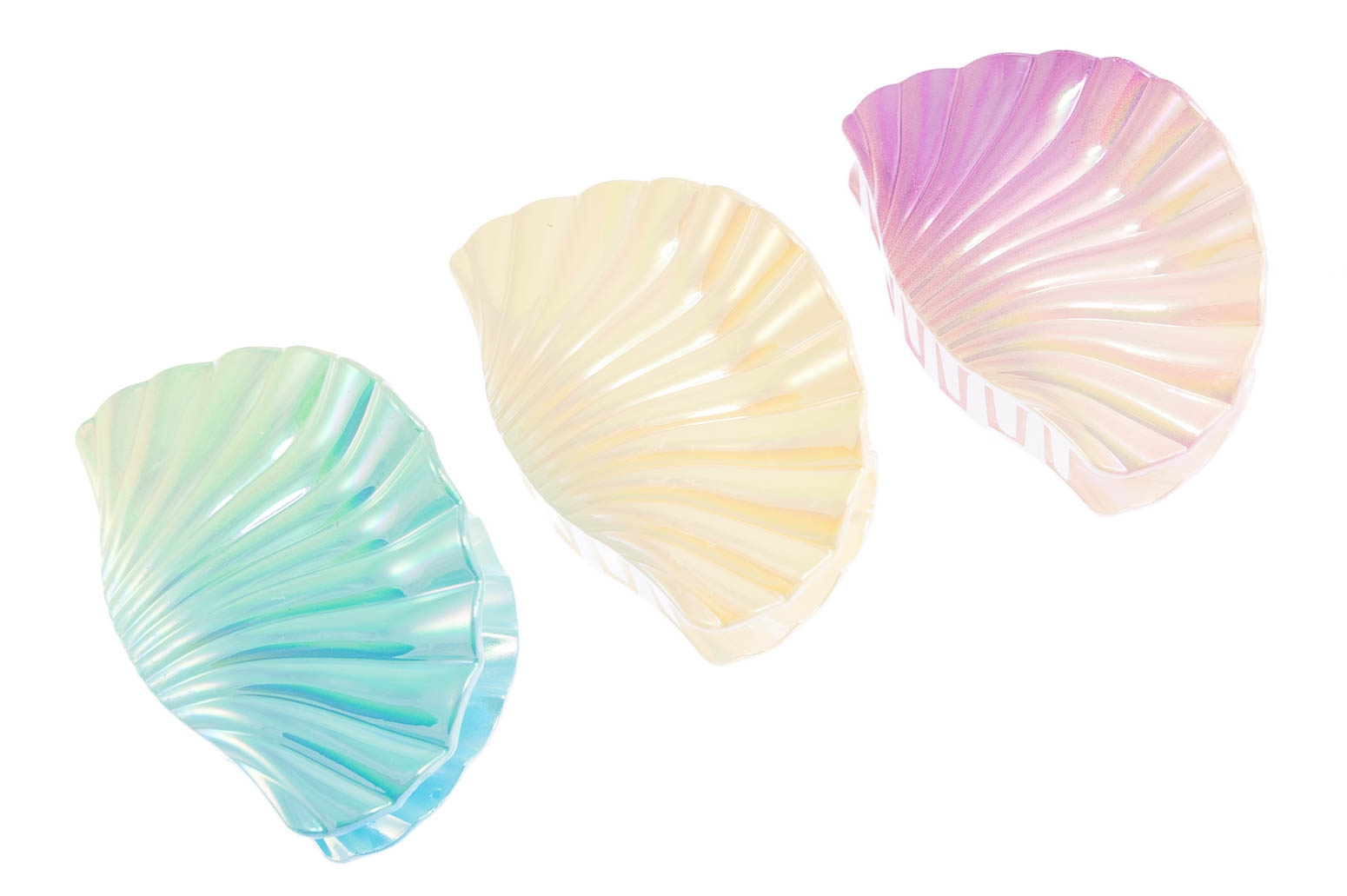Modne spinki do włosów w kształcie muszelek, wykonane z wytrzymałego materiału.Zestaw skada się z trzech kolorów: beżowy, niebieski i fioletowy.