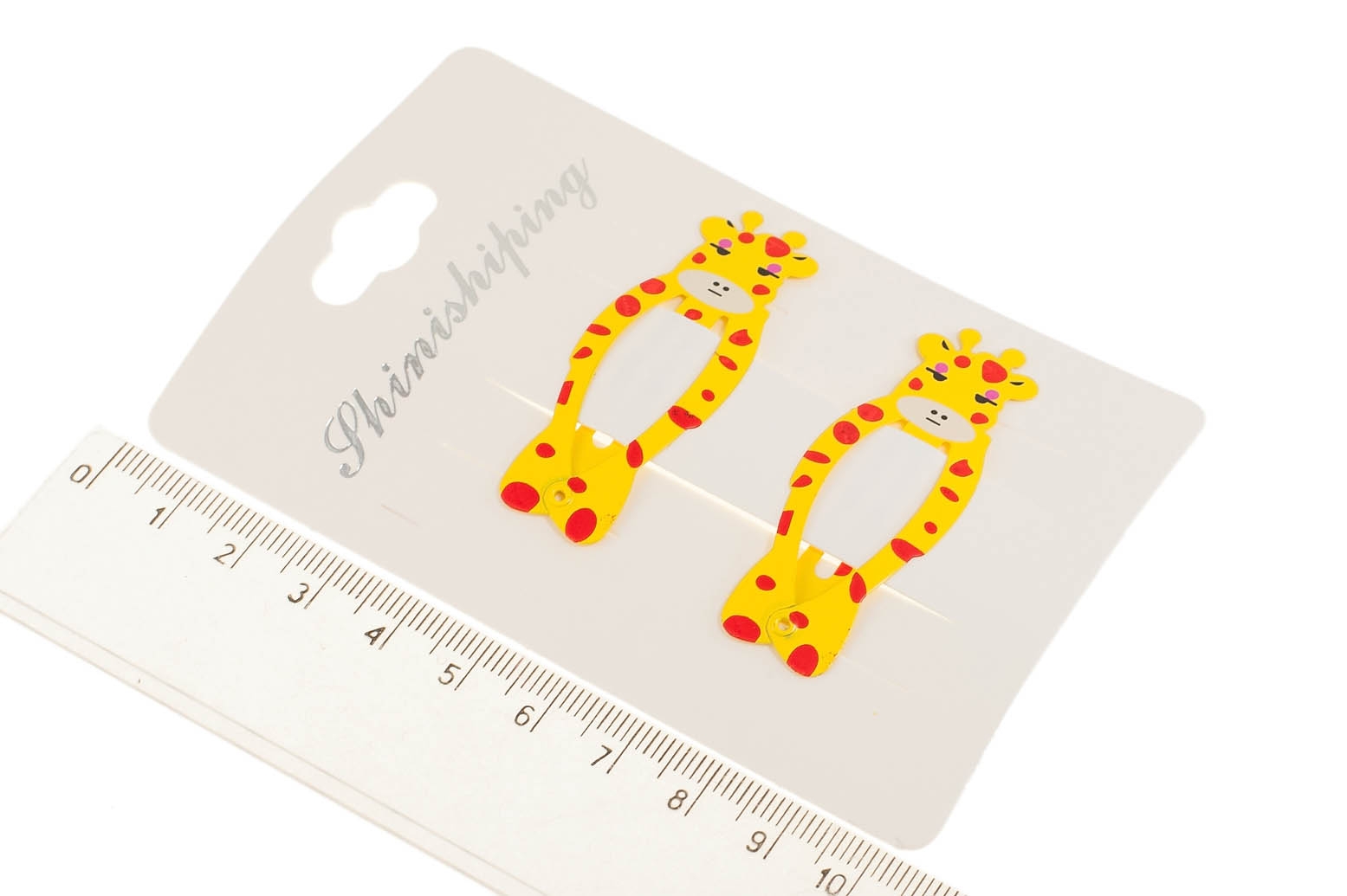 Spinki do włosów w kształcie żyrafy.