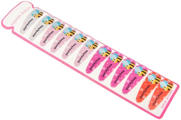 Klasyczne kolorowe spinki do włosów z obrazkiem pszczółki. Spinki dobrze trzymają włosy i dodadzą uroku każdej fryzurze.
