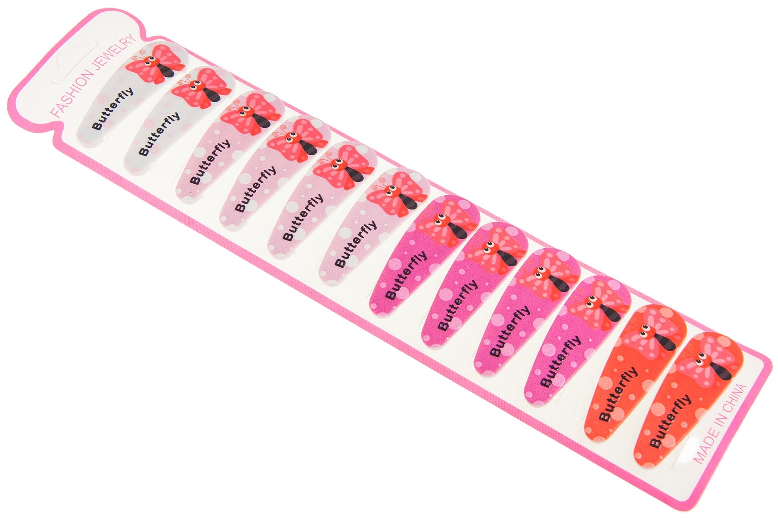 Klasyczne kolorowe spinki do włosów z obrazkiem motylka. Spinki dobrze trzymają włosy i dodadzą uroku każdej fryzurze.