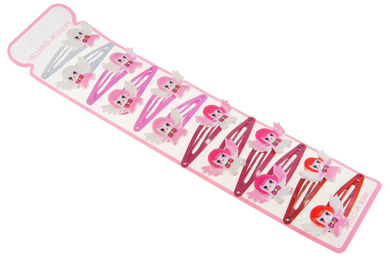 Klasyczne spinki do włosów, wykonane z metalu. Spinki są ozdobiene uroczymi aniołkami.