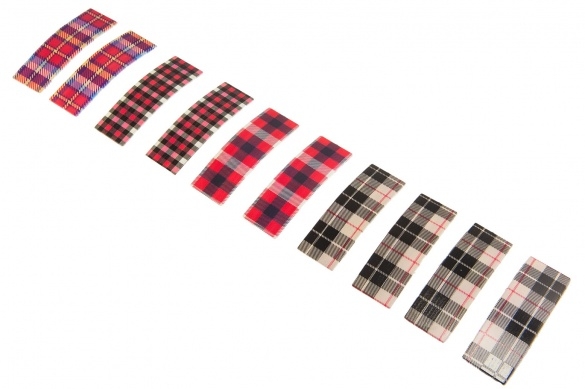 Klasyczne klorowe spinki do włosów z nadrukiem w kratkę.Zestaw składa się z czterech kolorów.