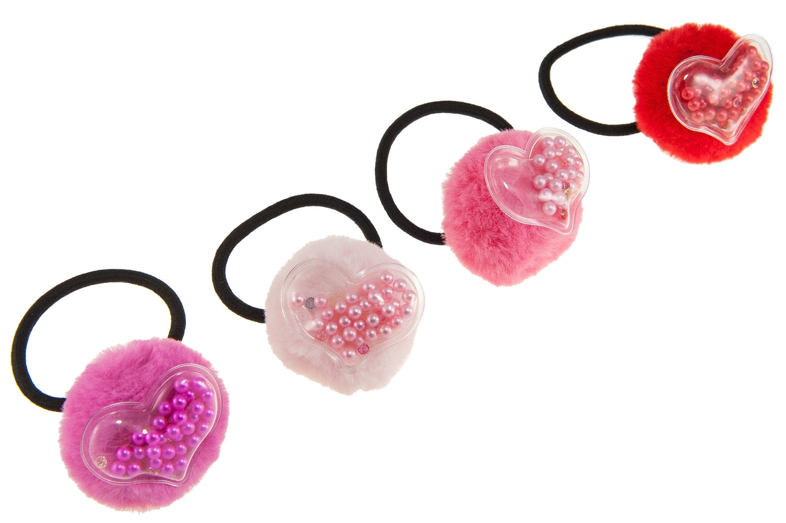 Klasyczna gumka z uroczą ozdobą – miłym w dotyku pomponem z serduszkiem wypełnionym perełkami.