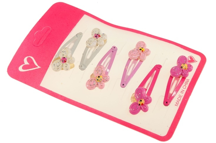 Klasyczne spinki do włosów z uroczą ozdobą w kształcie motylka.Zestaw składa się z różowo-białych spinek.