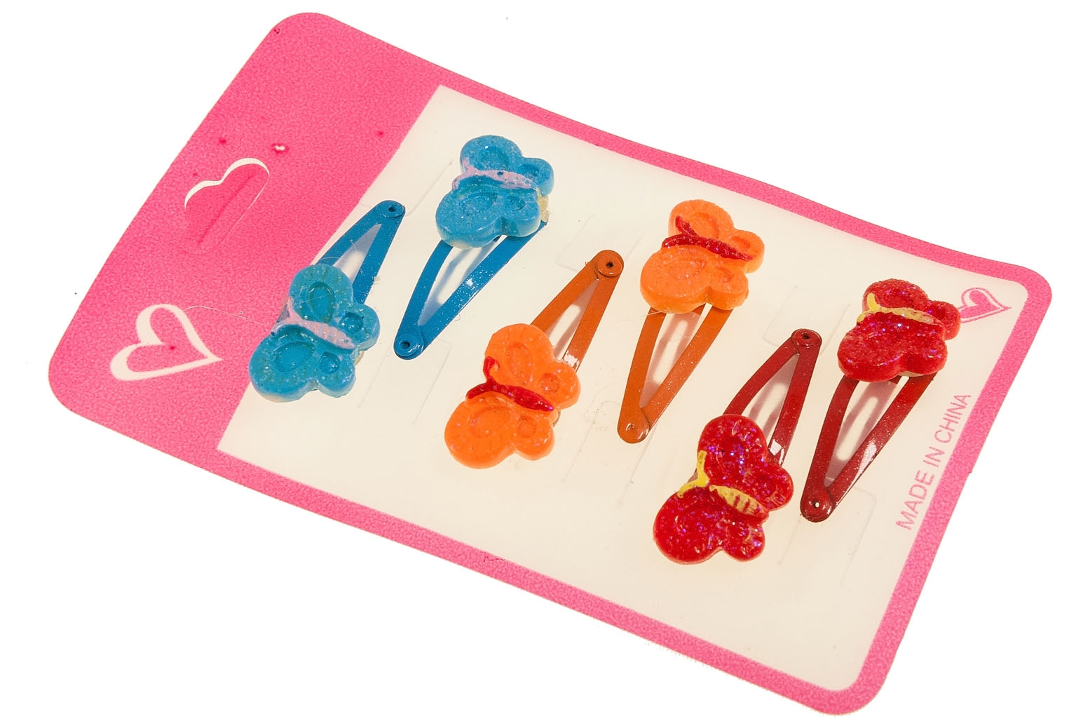 Klasyczne spinki do włosów z uroczą ozdobą w kształcie motylka.Zestaw składa się z trzech kolorów: niebieski, pomarańczowy i czerwony.