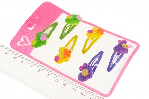 Spinka do włosów z ozdobą w kształcie serduszka z motylkiem i kwiatkiem.