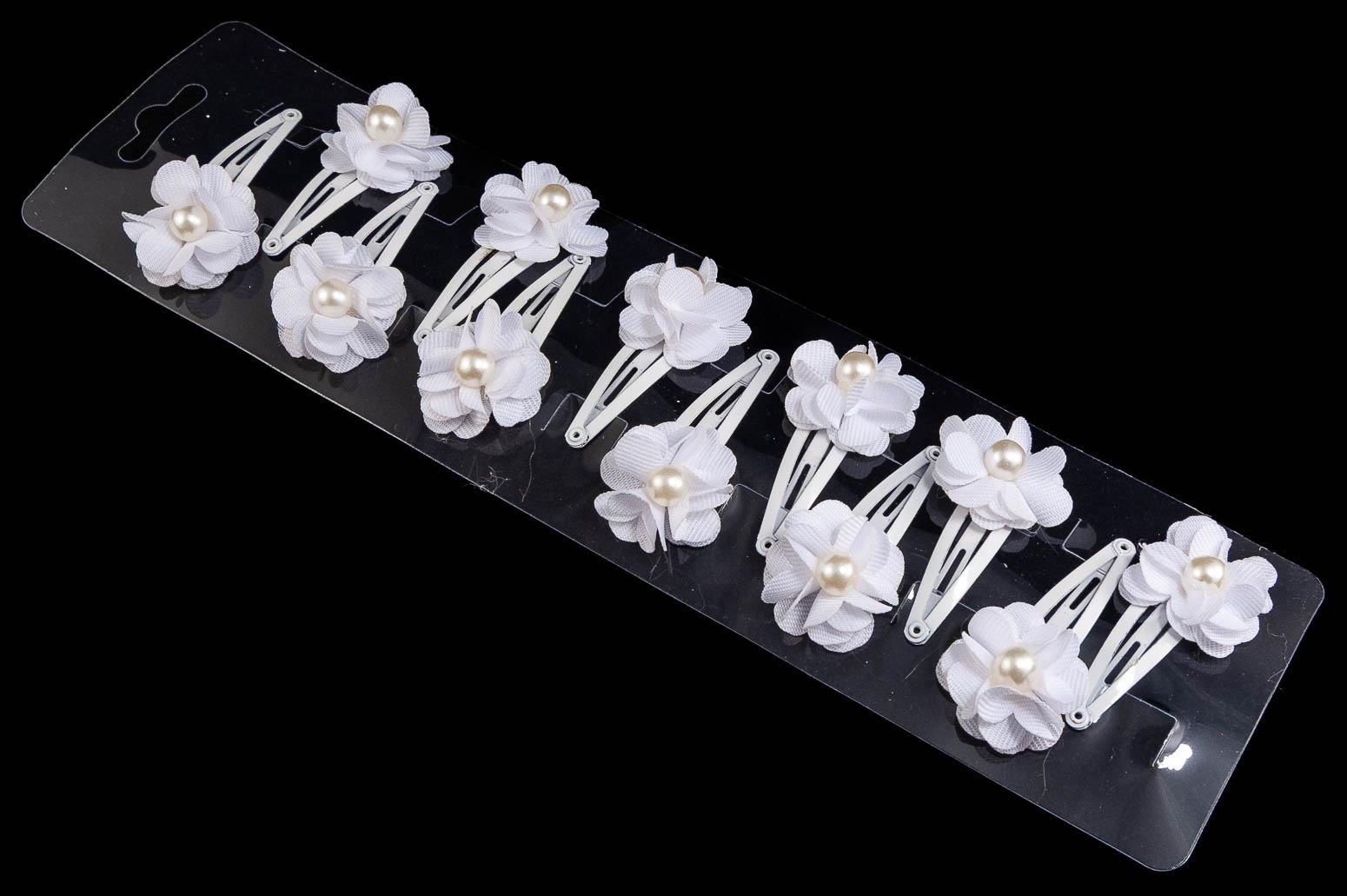 Klasyczne spinki do włosów z uroczą ozdobą w kształcie kwiatka.