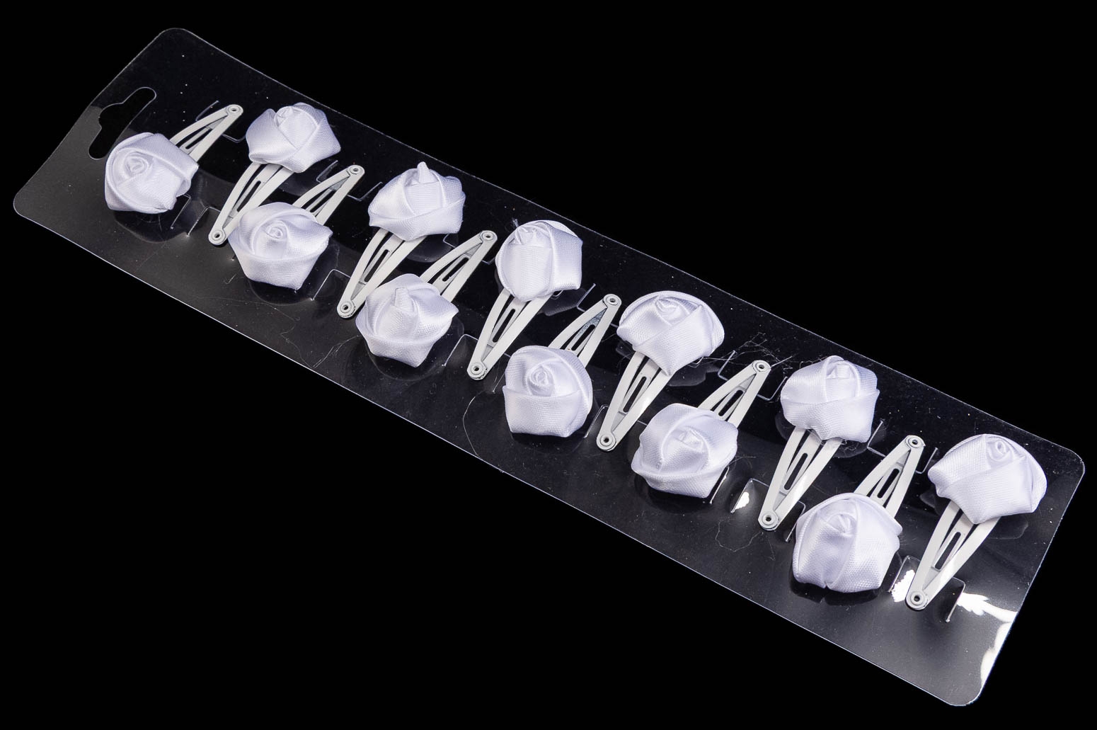 Klasyczne spinki do włosów z uroczą ozdobą w kształcie kwiatka.Zestaw składa się z ozdób w białym kolorze.