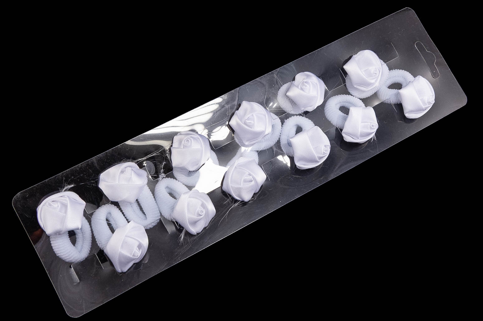 Klasyczne gumki do włosów z uroczą ozdobą w kształcie kwiatka.Zestaw składa się z ozdób w białym kolorze.