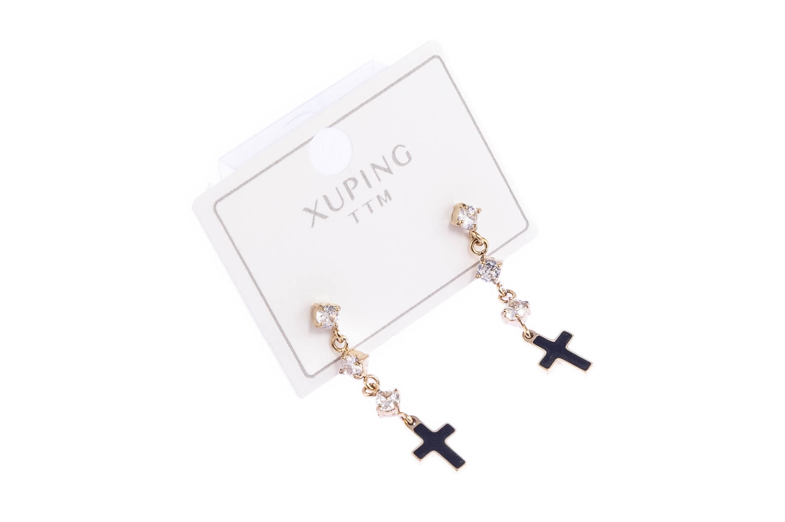 Eleganckie, wiszące kolczyki, ozdobine czarnymi krzyżykami i mieniącymi się kamieniami. Kolczyki w kolorze złotym.Wymiary kolczyków: