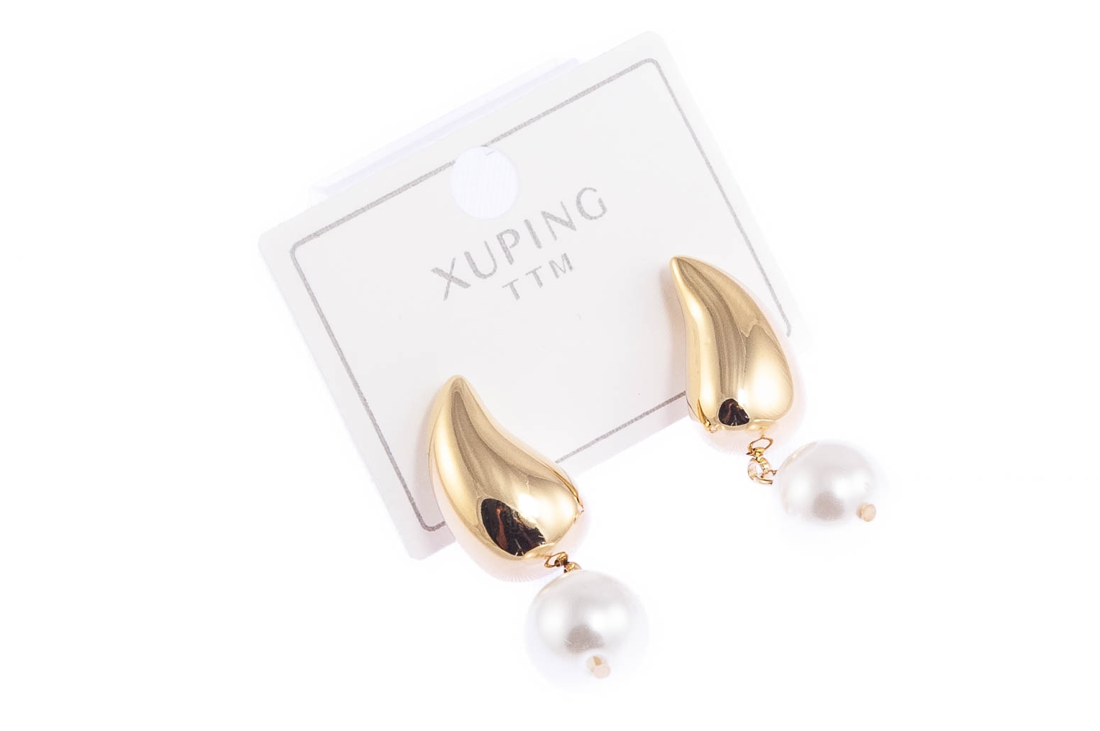 Eleganckie, wiszące kolczyki z perełkami. Kolczyki są w kolorze złotym z białymi perłami.