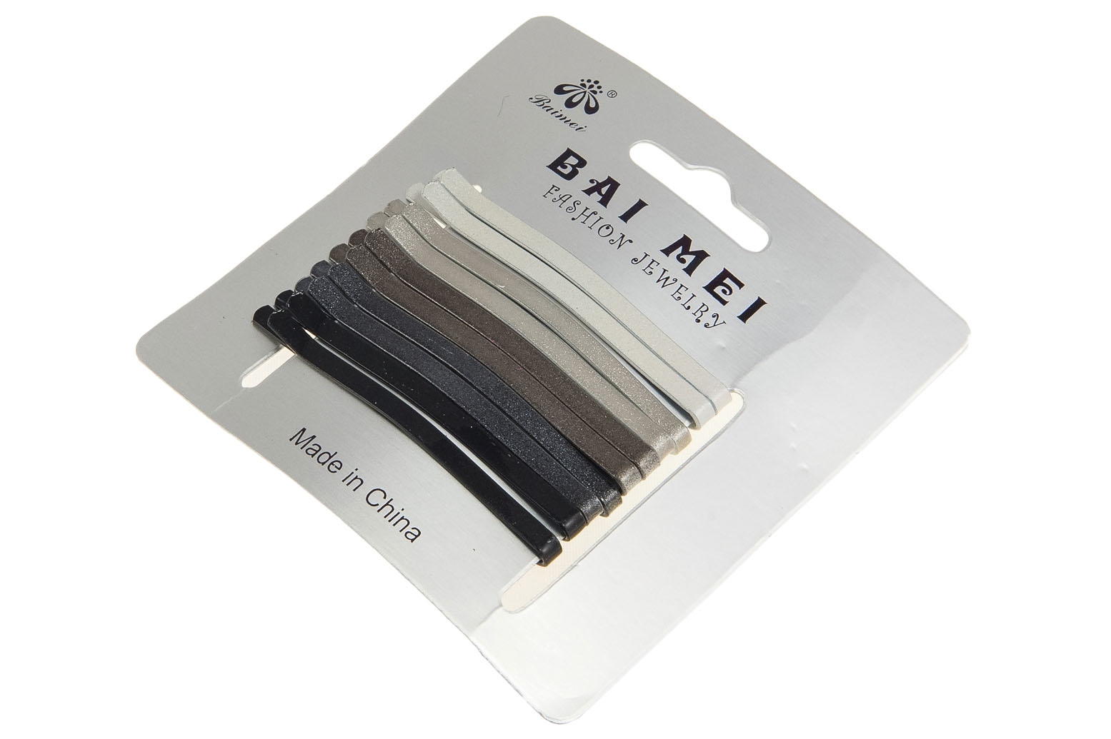 Szerokie wsuwki do włosów, dobrze trzymają włosy.Na paletce jest 10 wsuwek w pięciu kolorach: biały, jasno szary, szary, grafitowy i czarny.