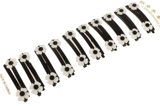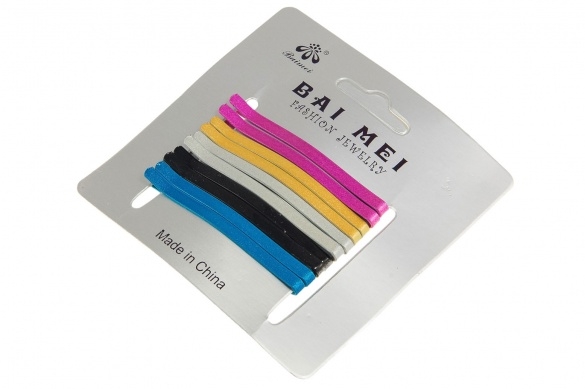 Szerokie wsuwki do włosów, dobrze trzymają włosy.Na paletce jest 10 wsuwek w pięciu kolorach: niebieski, czarny, biały, żółty i różowy.