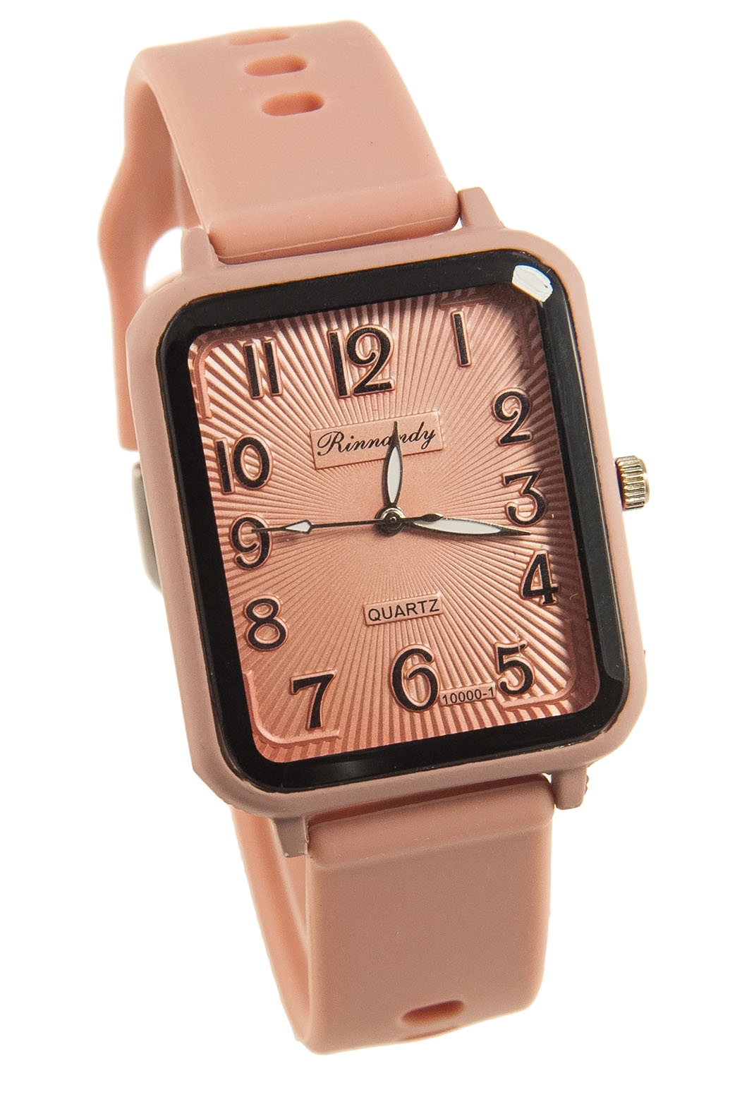 Elegancki zegarek z sylikonowym paskiem w kolorze morelowym.