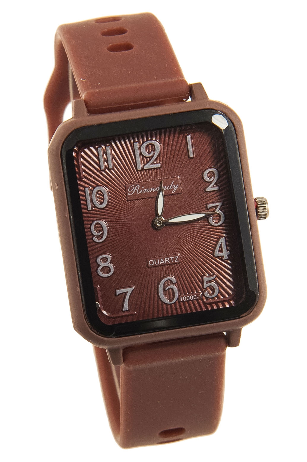 Elegancki zegarek z sylikonowym paskiem w kolorze brązowym.