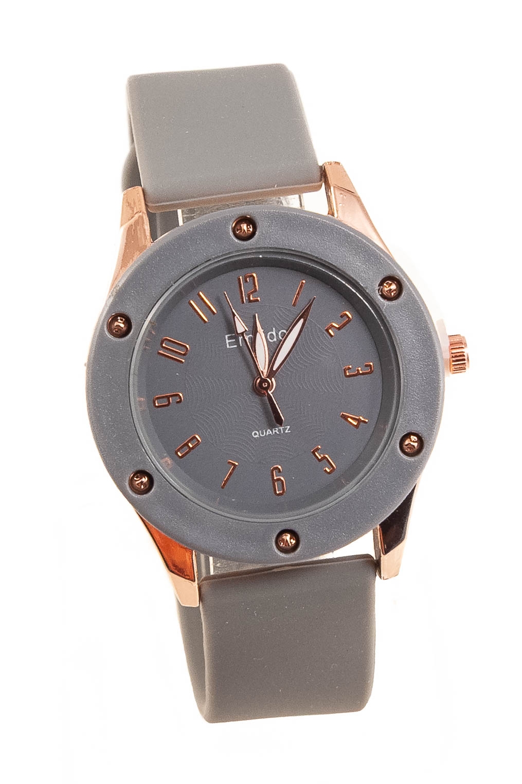 Elegancki zegarek o złotym wykończeniu z szarym paskiem.Wymiary zegarka: