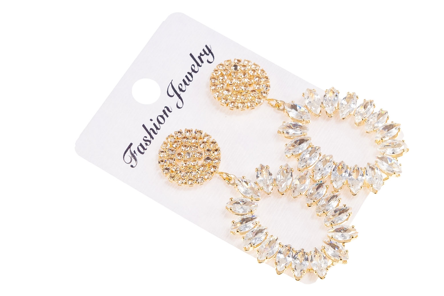 Modne w tym sezonie kolczyki.Długie kolczyki w kolorze złotym, ozdobione są pięknie mieniącymi się kamieniami.