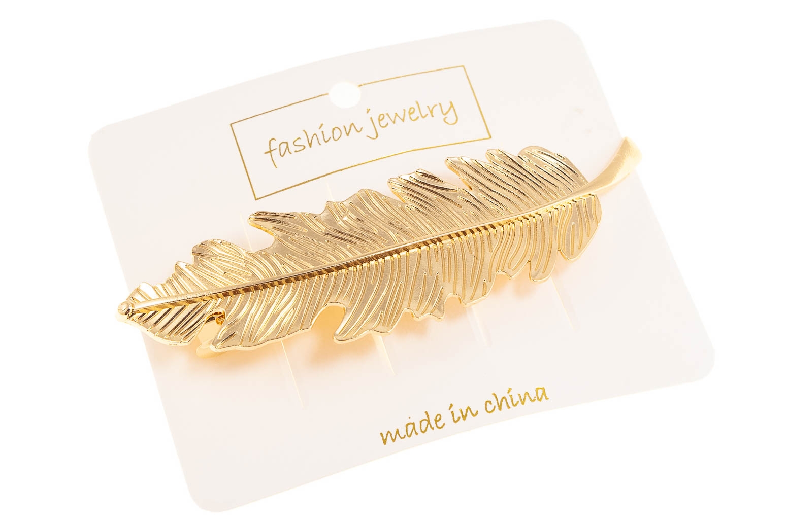 Metalowa spinka do włosów w kształcie piórka.